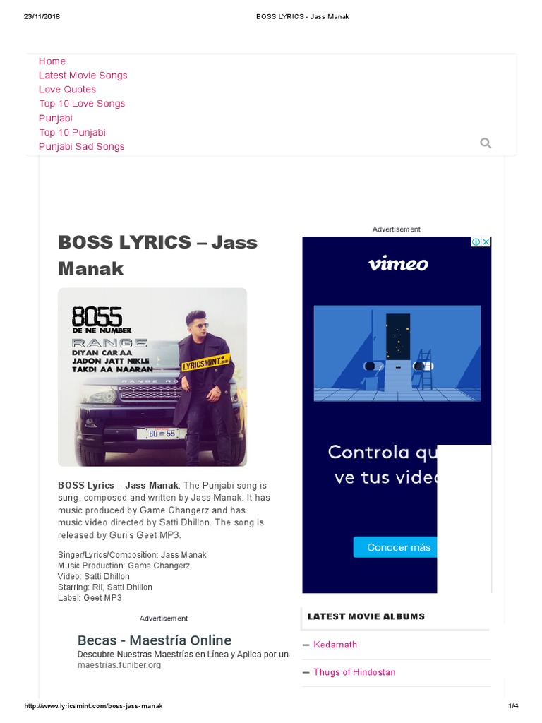 Boss Jass Manak Lyrics - Game changer in the house baby!