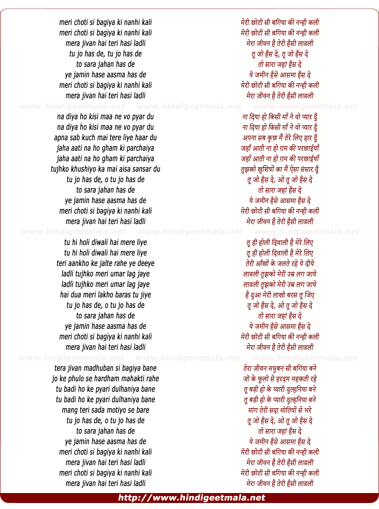 छोटी सी नन्ही सी प्यारी सी / Kō mērī taraph sē namastē kahnā.