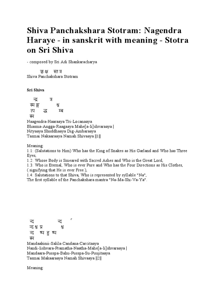 Panchakshara Stotram Shiv Panchakshar Stotra Pdf / Śrī śivapañcākṣarastōtram) is a stotra.