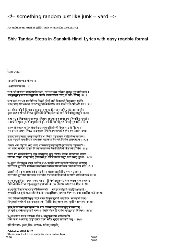 Pdf:sut6Dk5Kulm= Shiv Tandav Stotram Lyrics / Jata taveega lajjala pravaaha paavi tasthale galeva lambya lambitaam bhujaanga tunga malikam damad damad damad dama ninada vada marvayam chakara chandtandavam.